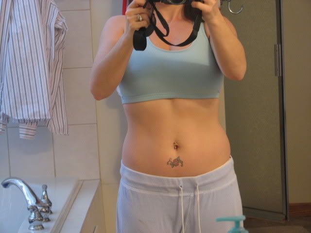This is my goal right now... along with cardiovascular fitness, I want a flat stomach and trimmer legs. This picture was taken right after I found out I was pregnant with my fourth, Brynn. I am pretty confident that I can acheive this again... it's not going to be easy though.